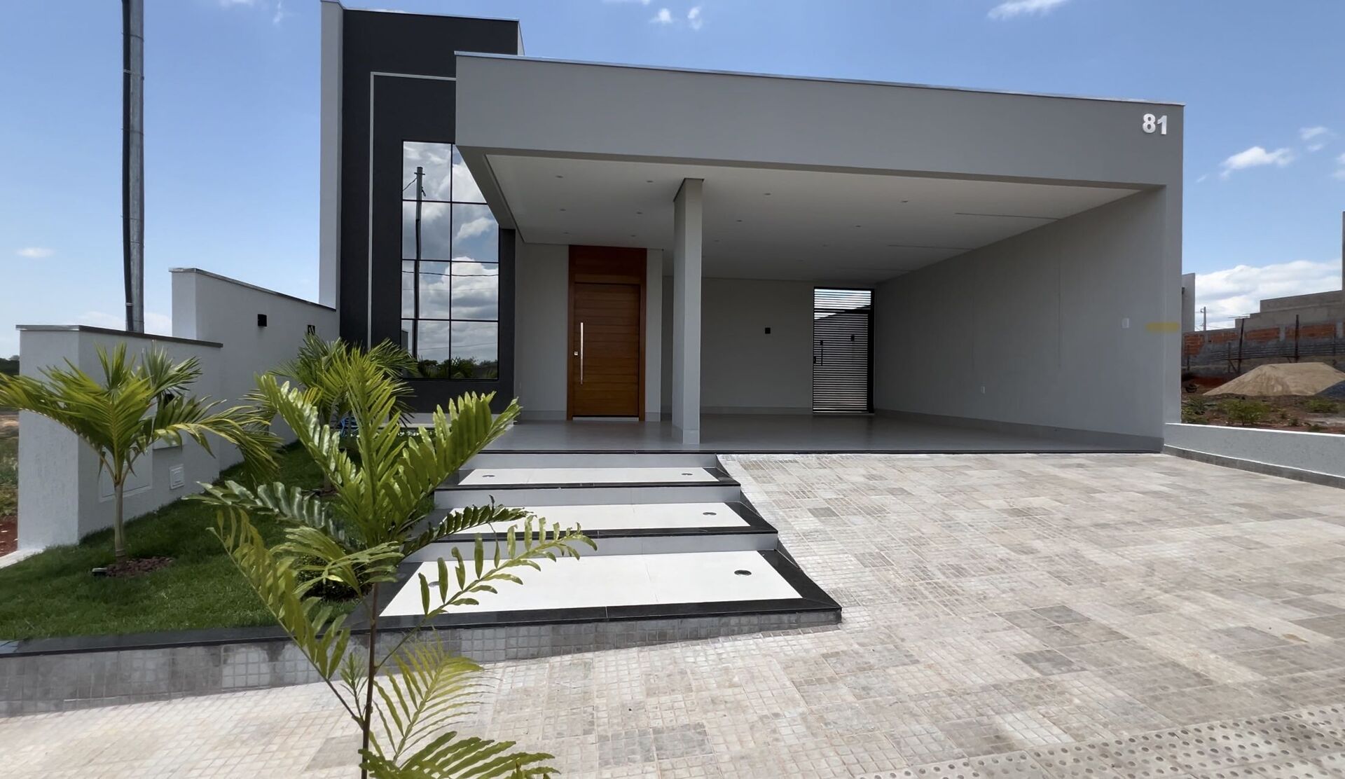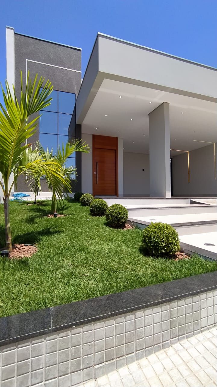 Sala com pé direito duplo, iluminação em led, cozinha integrada, área gourmet, quintal, piscina, sistema de som integrado com bluetooth, garagem coberta para 02 veículos, casa para o nascente.